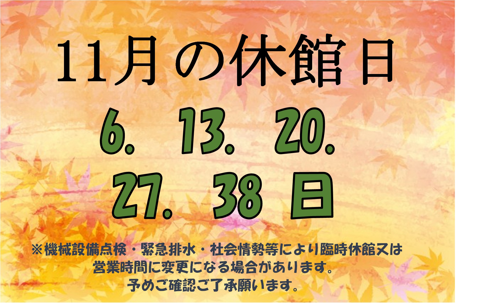 営業のお知らせ(11月分)