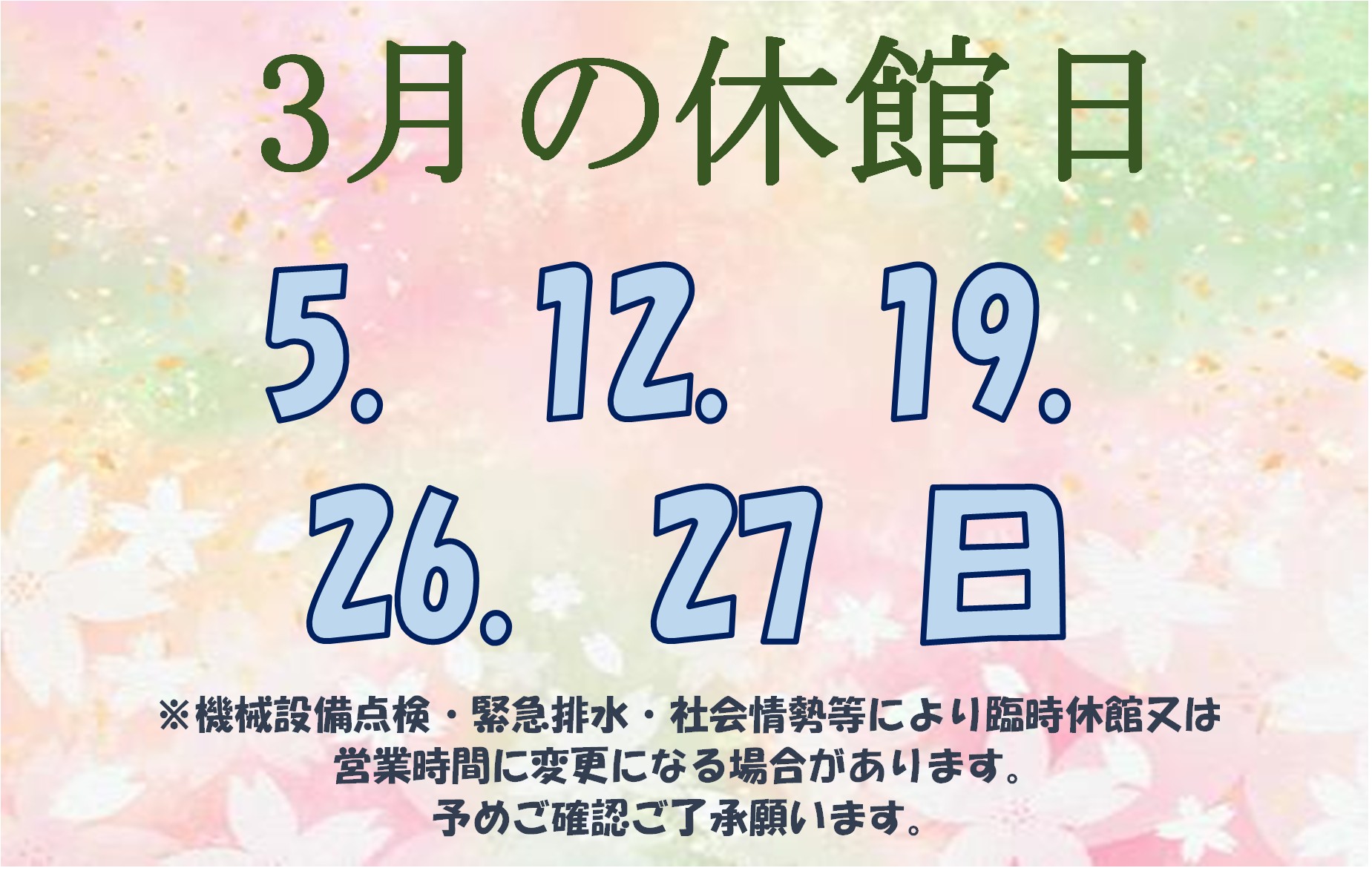 営業のお知らせ(3月分)