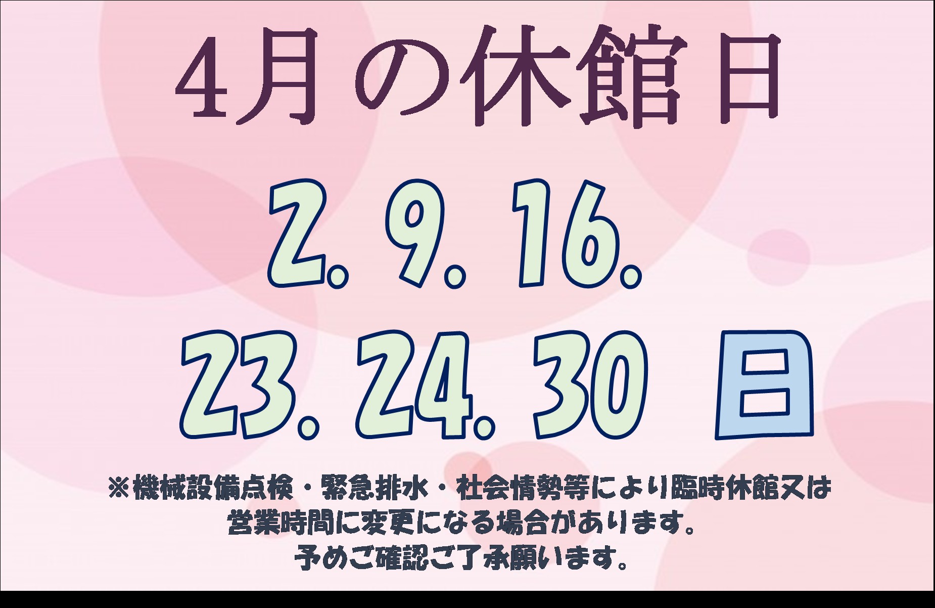 4月2日 臨時開館のお知らせ